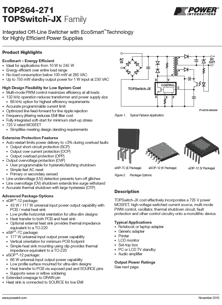 TOP264VG OFF-LINE POWER SW. 30-62W 11p. eDIP-12B